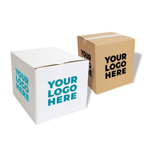Choose from our in-stock sizes in kraft brown or mottled white. Upload your logo and choose your customization options.